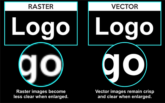 Vector: Vector imagery is any image defined as infinitely scalable. Which means the image can be sized to fit any application without losing quality and clarity. Common vector file formats include; EPS, AI, CDR, SVG, and PDF. (PDF files can sometimes be both raster and vector combined)